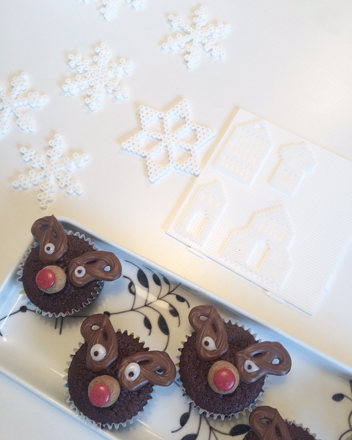 Og Sofie og jeg har hygget med perler. Hun lavede en masse snefnug i midi perlerne, som vi skal have op og hænge i vinduerne, og jeg kastede mig ud i de helt små mini Hama perler.